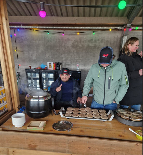 Tussen het zoeken door kon men langskomen voor een goed opgezette catering. We hadden broodjes hamburger (ook vegetarisch), broodjes worst en een super grote pan met erwtensoep. Ook aan drinken ontbrak het onze gasten niet.